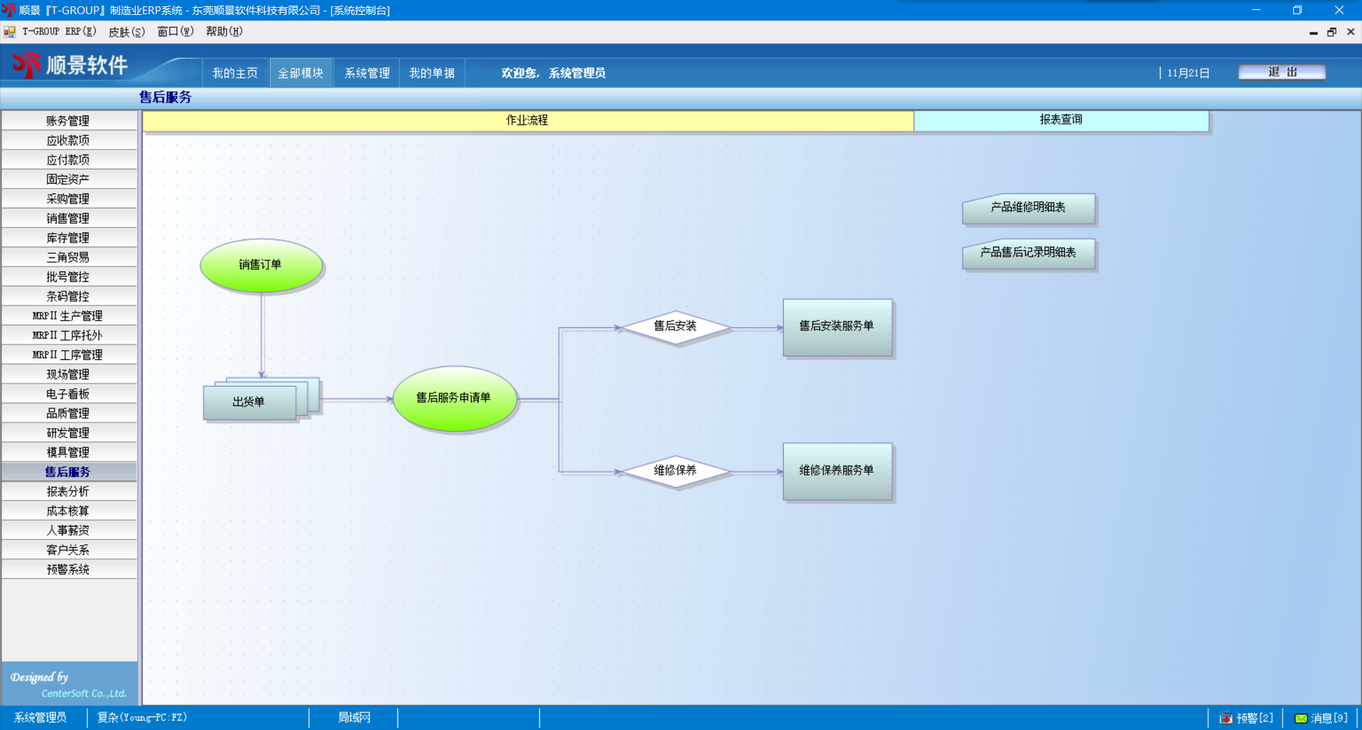 5.    维修、安装单有记录订单的合同编号、且系统自动根据销售订单的保修期和出货日期自动结算机型的到期日;